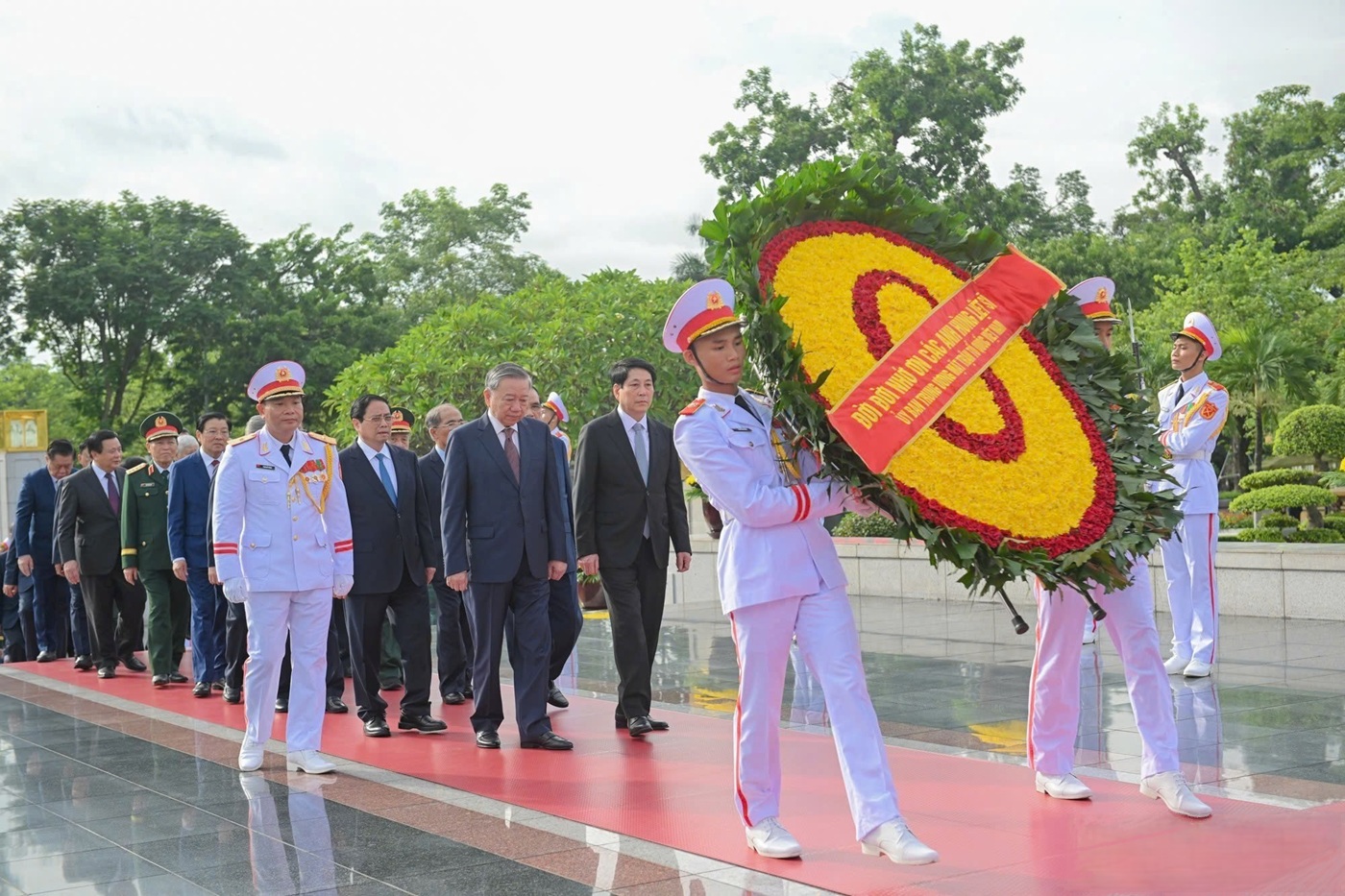 Để tỏ lòng biết ơn các anh hùng liệt sĩ và các gia đình có công đã không tiếc máu xương chiến đấu oanh liệt với kẻ thù để đem lại ấm no, hạnh phúc cho đồng bào, dưới sự lãnh đạo của Đảng, nhân dân ta quyết tâm đoàn kết phấn đấu làm tròn nhiệm vụ xây dựng và bảo vệ Tổ quốc, đưa đất nước, dân tộc Việt Nam bước vào kỷ nguyên mới, kỷ nguyên hùng cường, giàu mạnh, sánh vai với các cường quốc năm châu, như mong muốn của Chủ tịch Hồ Chí Minh vĩ đại./.