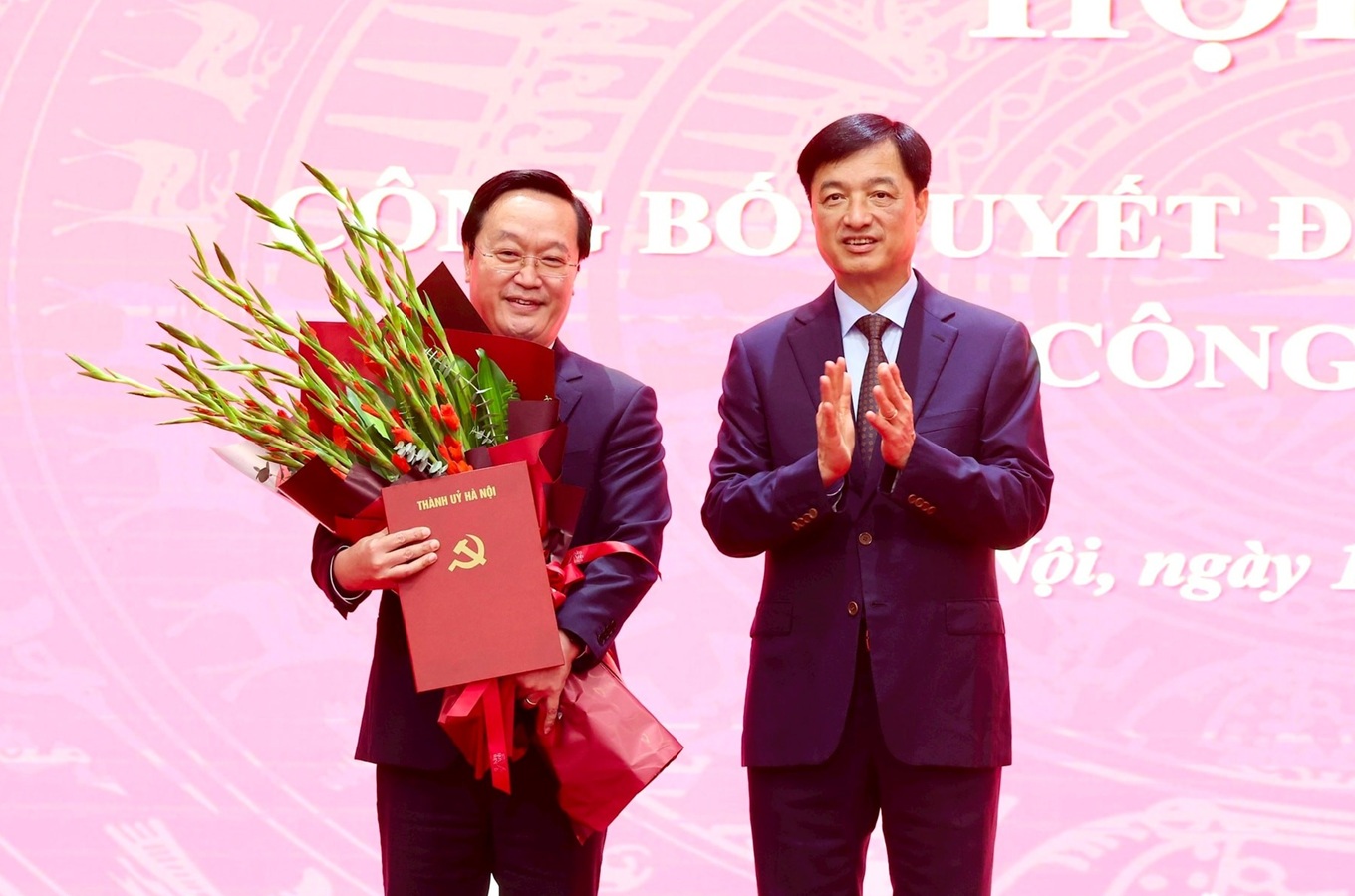 Đồng chí Nguyễn Duy Ngọc, Ủy viên Bộ Chính trị, Bí thư Thành ủy Hà Nội đã trao quyết định cho đồng chí Nguyễn Đức Trung.
