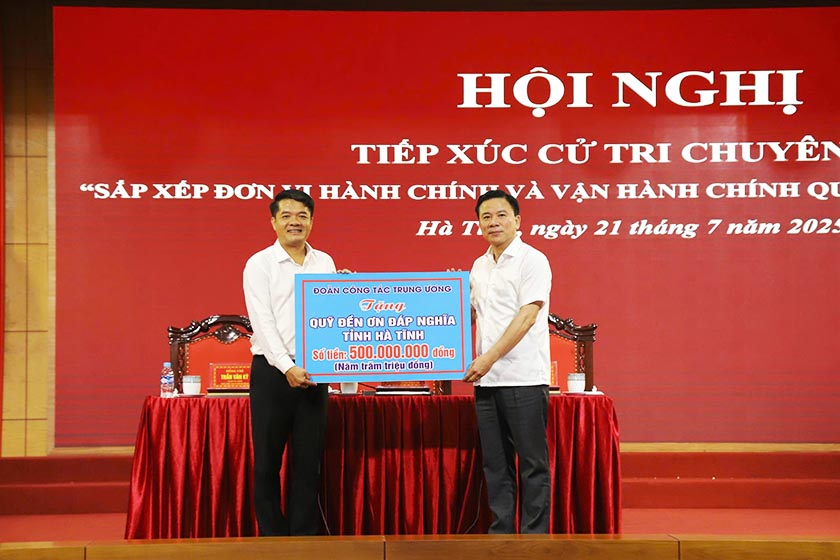 Nhân kỷ niệm 78 năm Ngày Thương binh - Liệt sĩ (27-7-1947 - 27-7-2025), đoàn công tác của Ban Tổ chức Trung ương đã trao 500 triệu đồng cho Quỹ đền ơn, đáp nghĩa tỉnh Hà Tĩnh./.