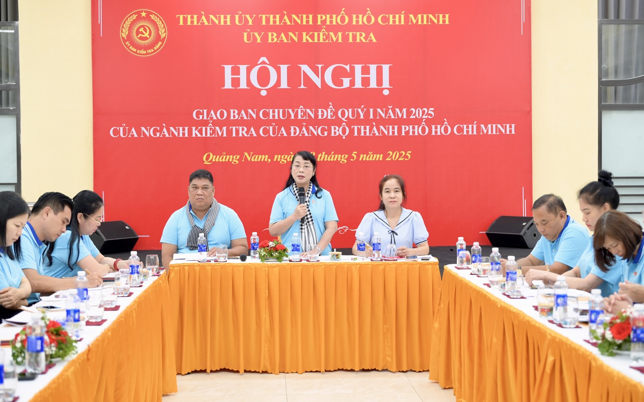 Đồng chí Trần Kim Yến, Ủy viên Ban Thường vụ, Chủ nhiệm Ủy ban Kiểm tra Thành ủy Thành phố Hồ Chí Minh phát biểu tại hội nghị giao ban chuyên đề quý I năm 2025, ngày 8-5-2025_Ảnh: sggp.org.vn